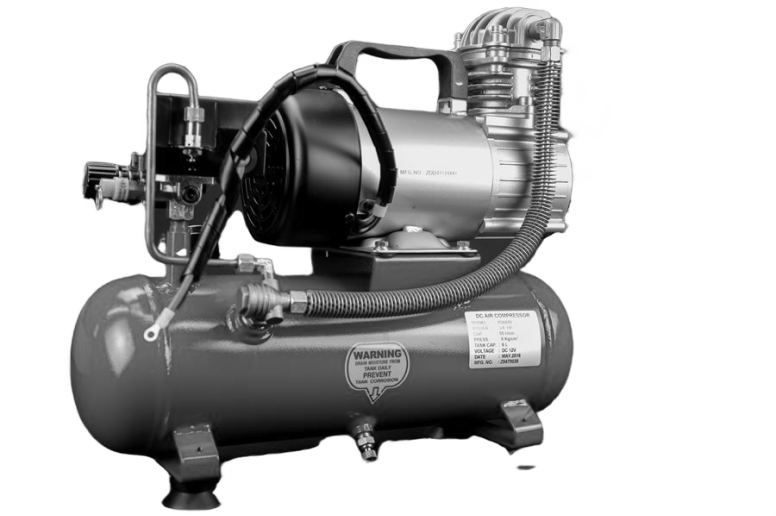 Портативный высокопроизводительный компрессор 12 В постоянного тока с 6-литровым напорным баком, который позволяет точно регулировать давление в шинах так же удобно и быстро, как стационарный воздушный компрессор.